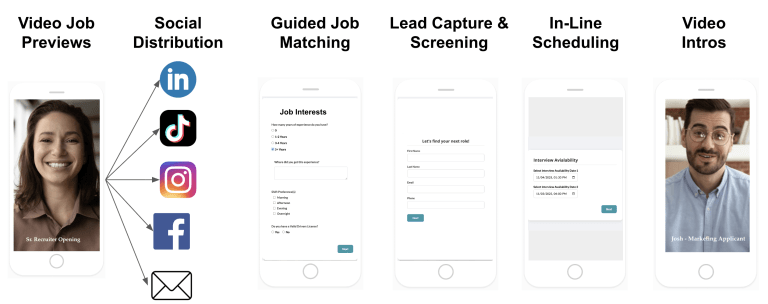 Easily recorded video job previews from internal advocates and distribute them to your favorite social networks using our pre-built integrations with LinkedIn, TikTok, Facebook & Instagram. Additionally you can capture video resume, share with hiring managers, and schedule interviews to expedite the hiring process.